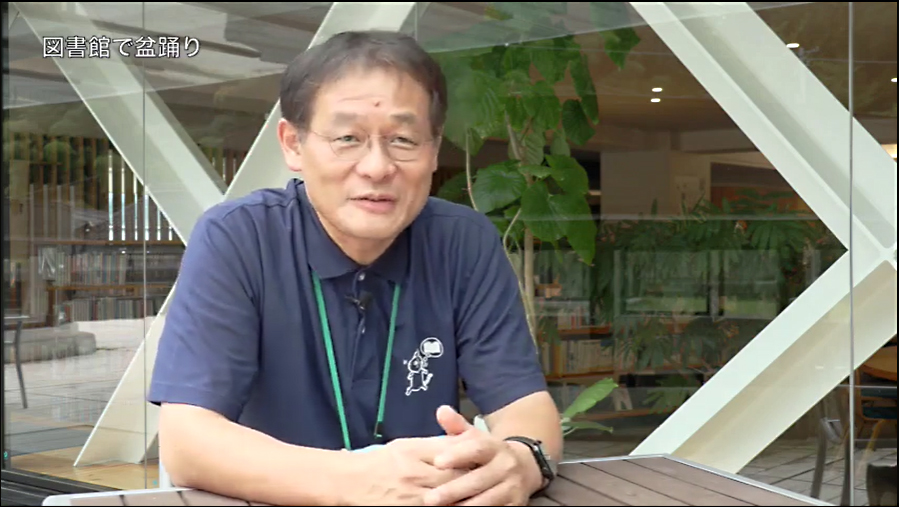 2023年からは、新たに「勝山もちより盆踊り」という名前で夏祭りが復活。インタビューでは、盆踊りの会場となった真庭市立中央図書館の館長、西川さんにもお話を伺いました。社会教育や地域活動をサポートする役割を持った図書館が、地域のお祭り、という文化を楽しむ拠点となりました。